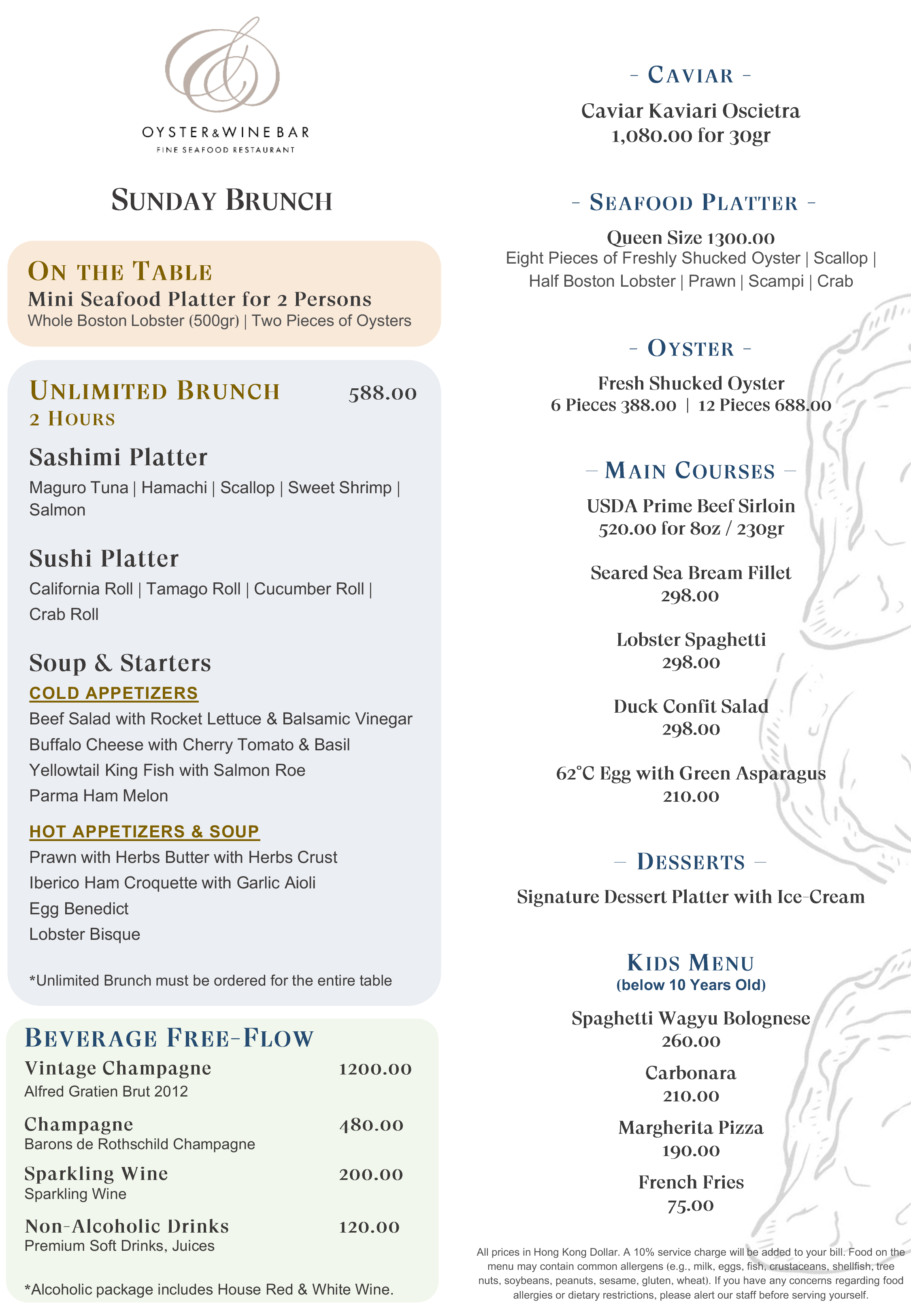 exclusive 20% savings on food consumption when booking “The Grand Sunday Brunch at Oyster & Wine Bar” via Sheraton Hong Kong eShop!