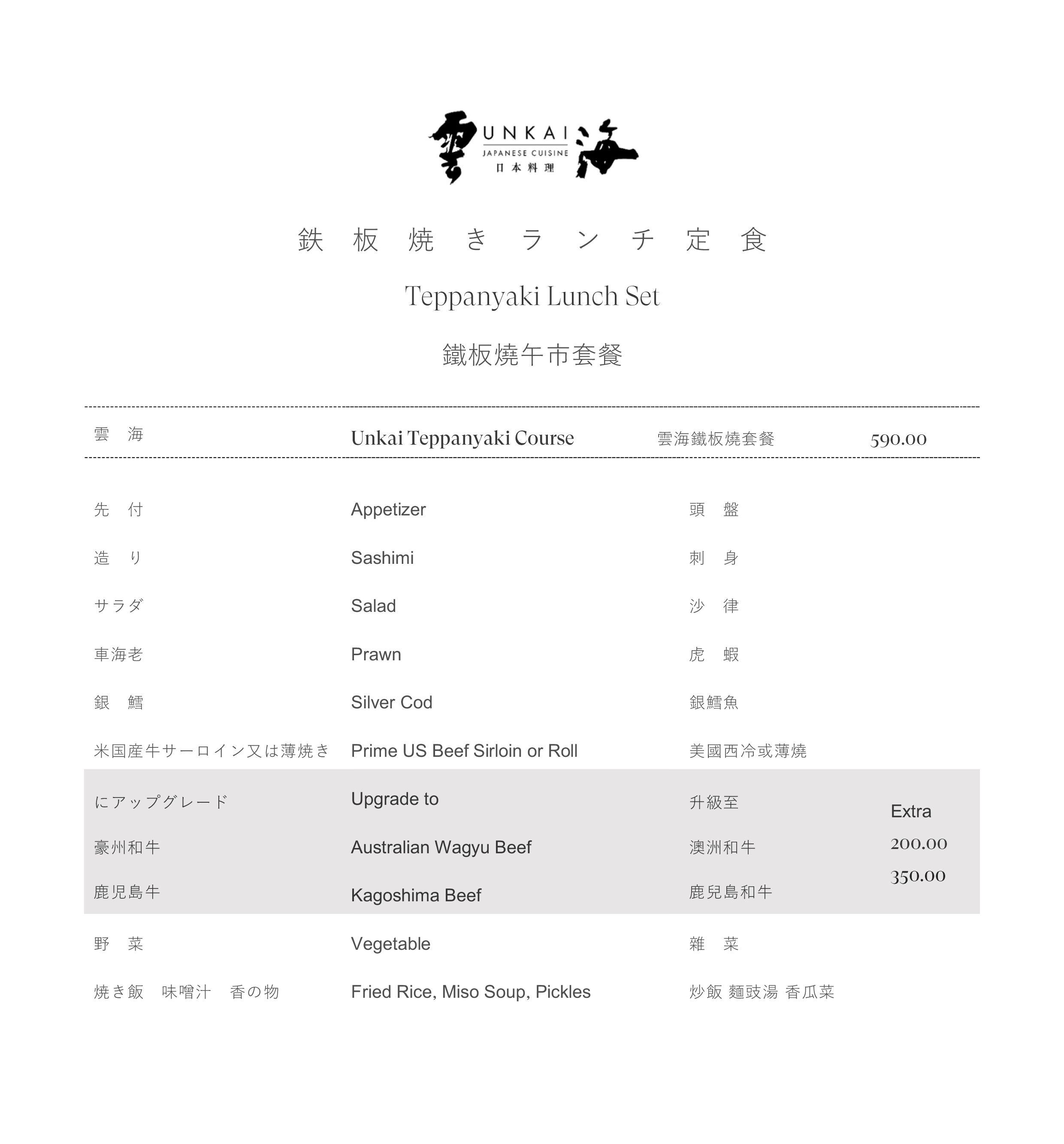 雲海午市鐵板燒套餐原價每位 $590,